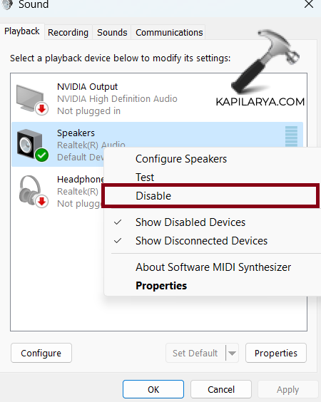 3.次に、有効/無効にするサウンド出力デバイスを右クリックします。