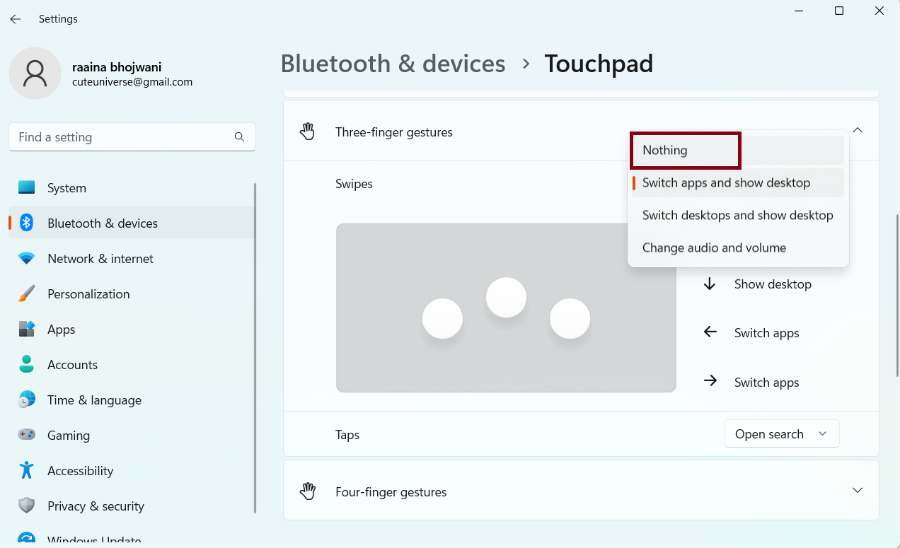 したがって、Windows 11で3本指のジェスチャーを正常に無効にしました。