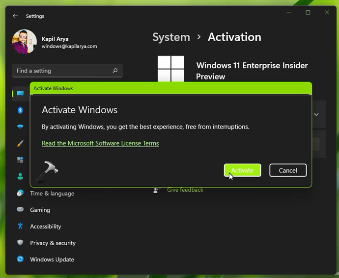 5。次に、クリックします活性化Windowsをアクティブにする下のボタン。