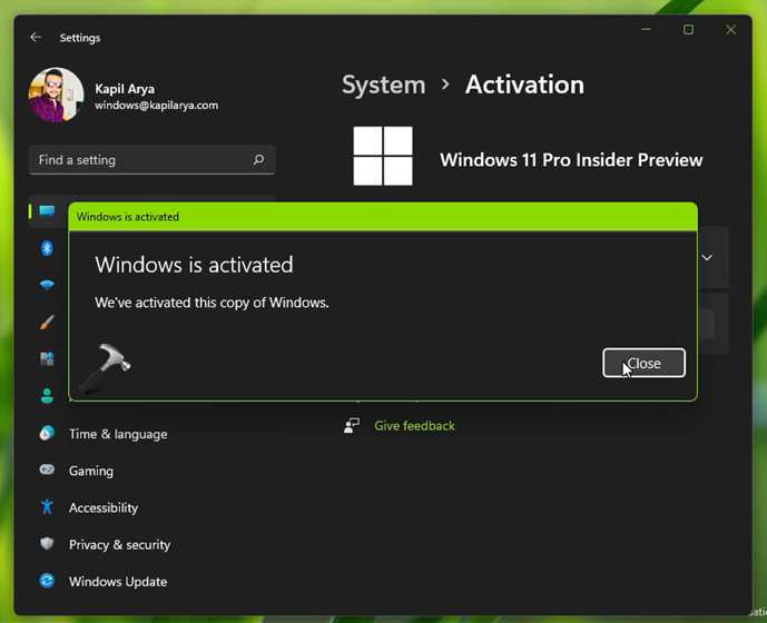 6。数瞬間、エディションがWindows 11 Proに変更され、Windowsもアクティブ化されていることがわかります。