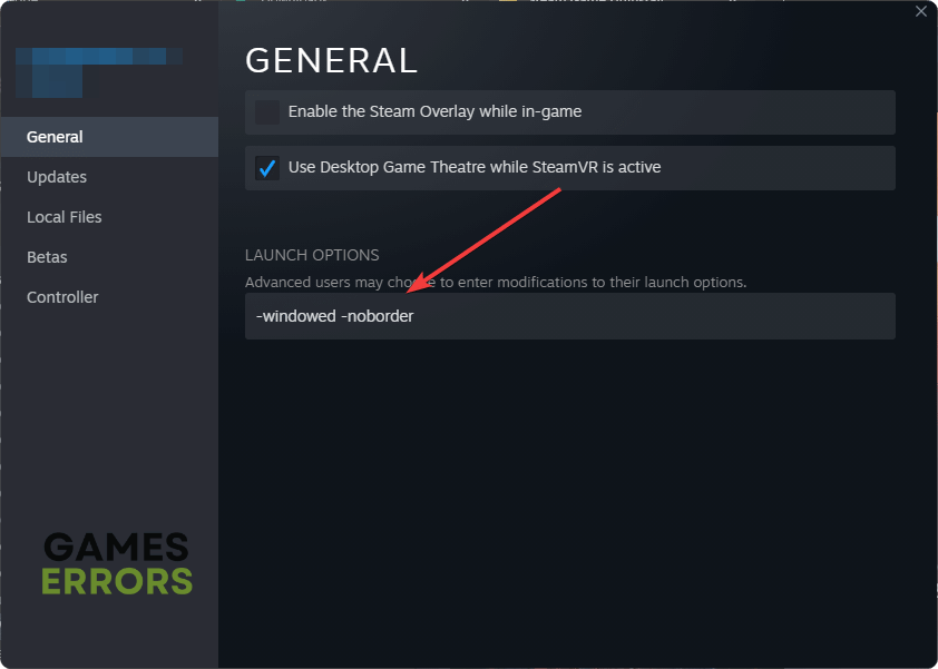 - 起動オプションでは、入力します-Windowed -Noborder。