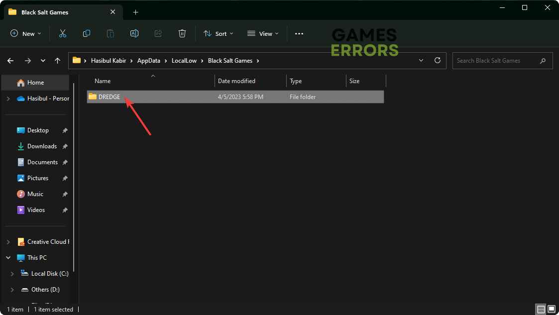 問題が続く場合は、Black Salt GamesディレクトリからDredgeを削除します。次に、それが役立ったかどうかを確認します。