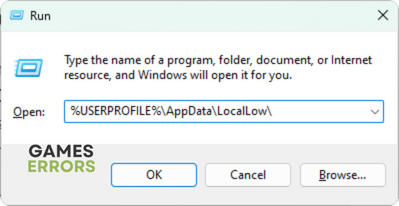 - win + rを押すことでオープンランを開き、%userprofile%appdatalocallowと入力し、Enterを押します。