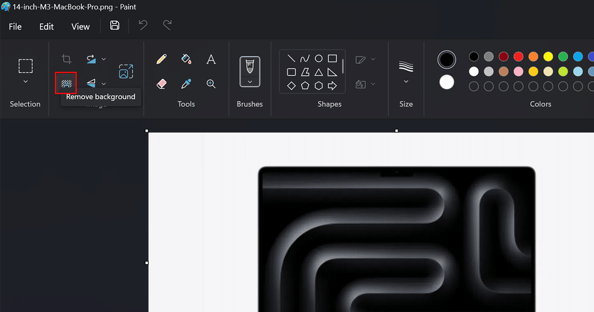 - ペイントは自動的に背景を検出し、それを削除します。選択ラインをクリックしてドラッグして、選択を調整できます。