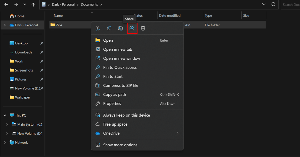 - 共有するファイルまたはフォルダーを右クリックして選択します共有。