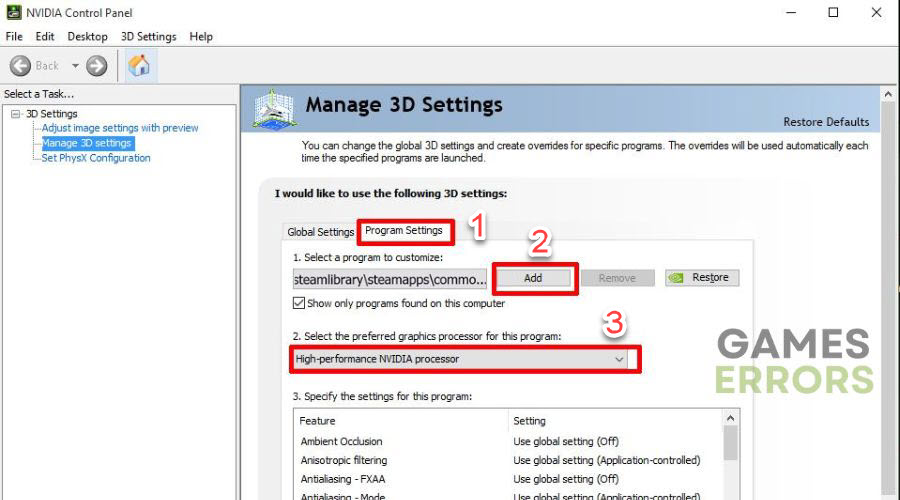 セクション2で - を選択します高性能NVIDIAプロセッサ。
