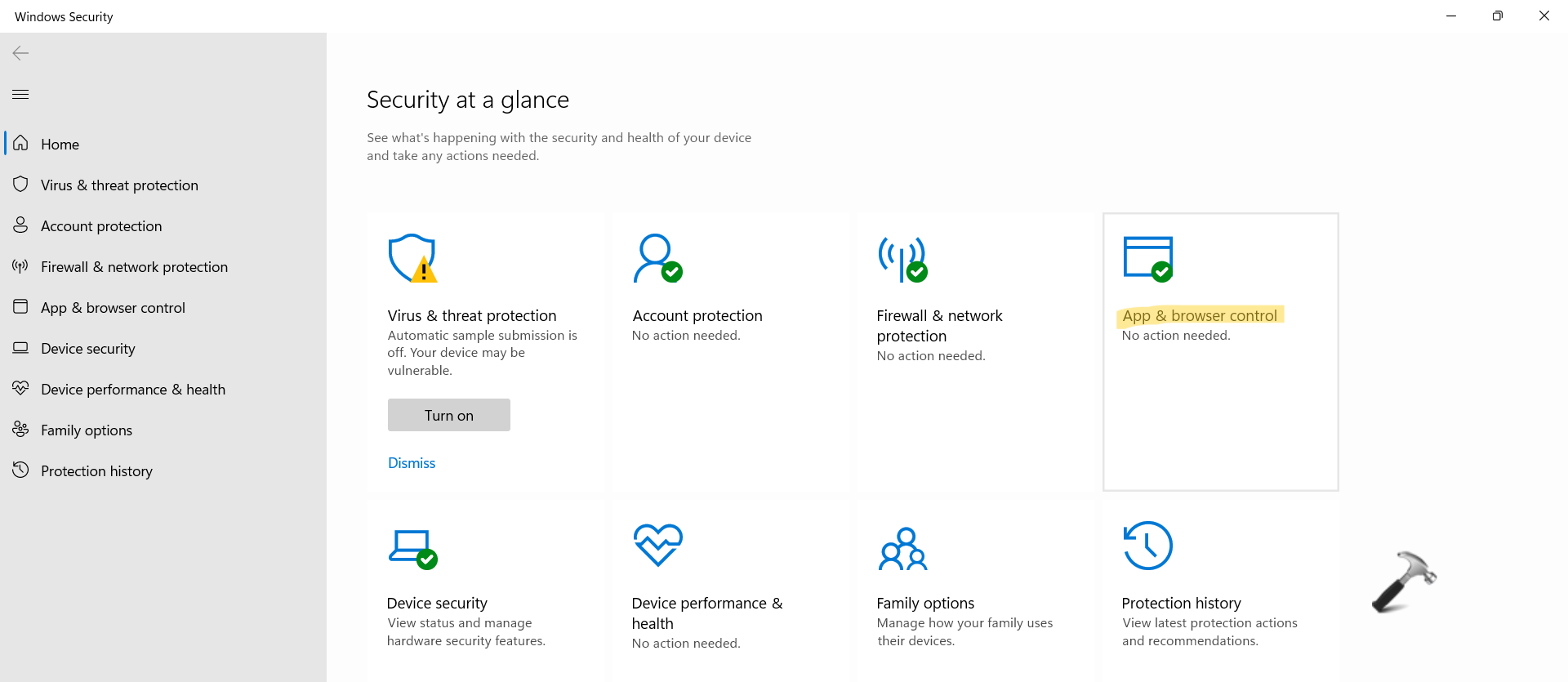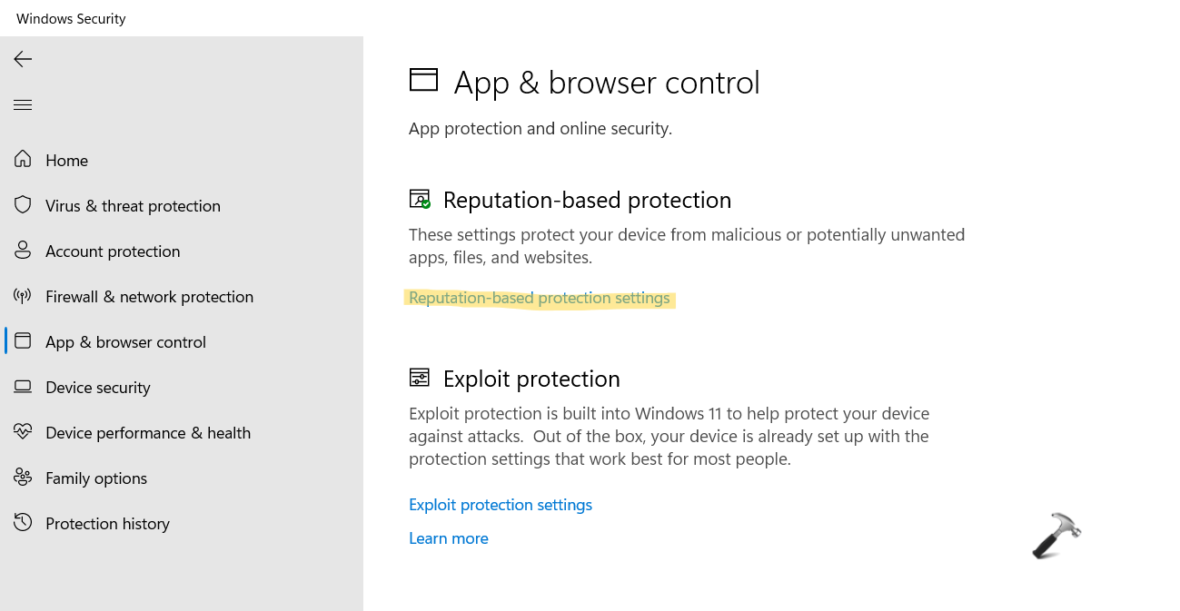 1。開けるWindowsセキュリティそして、行きますアプリとブラウザのコントロール。