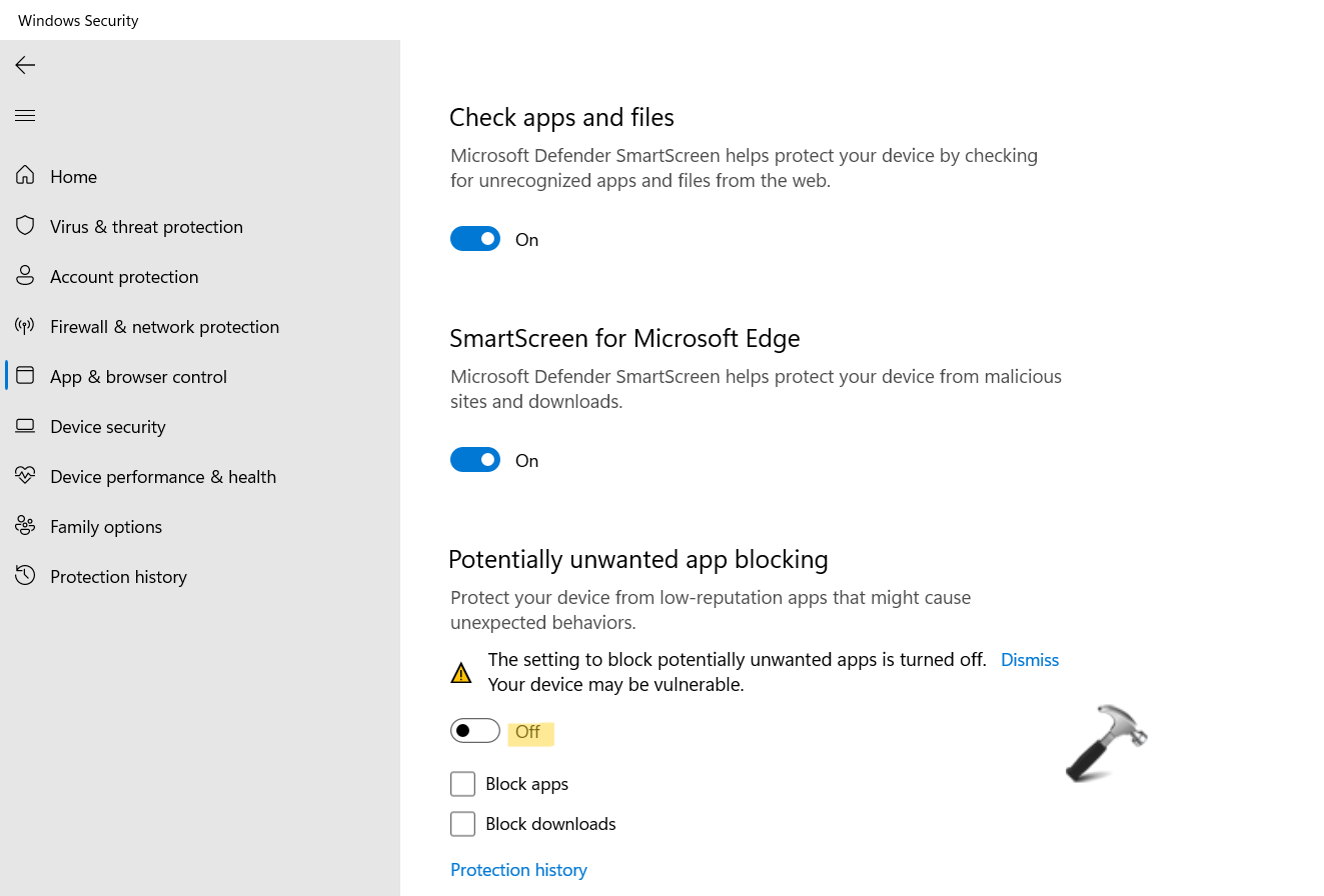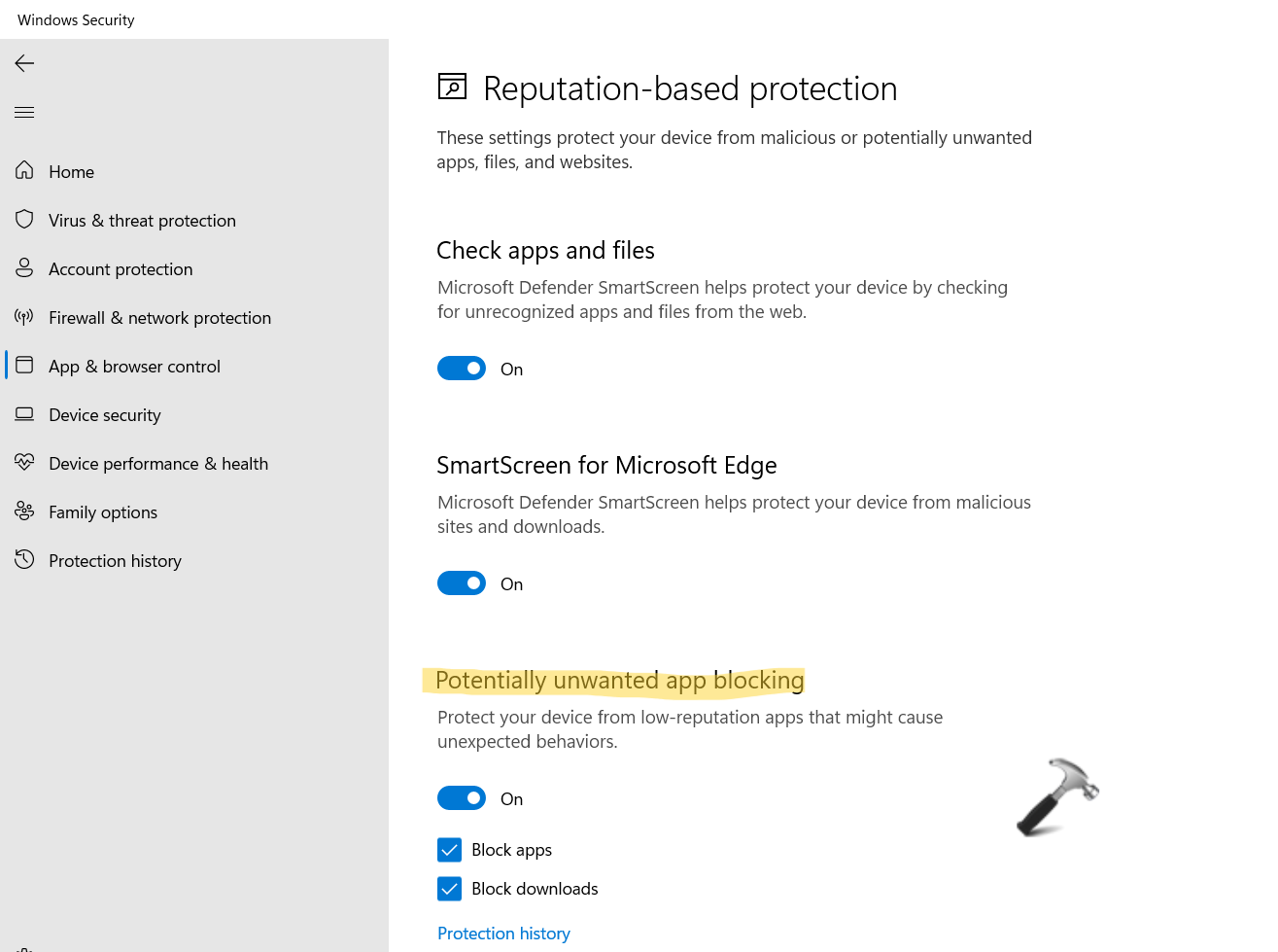 Windows 11でMicrosoft Defender PUA保護を有効/無効にします