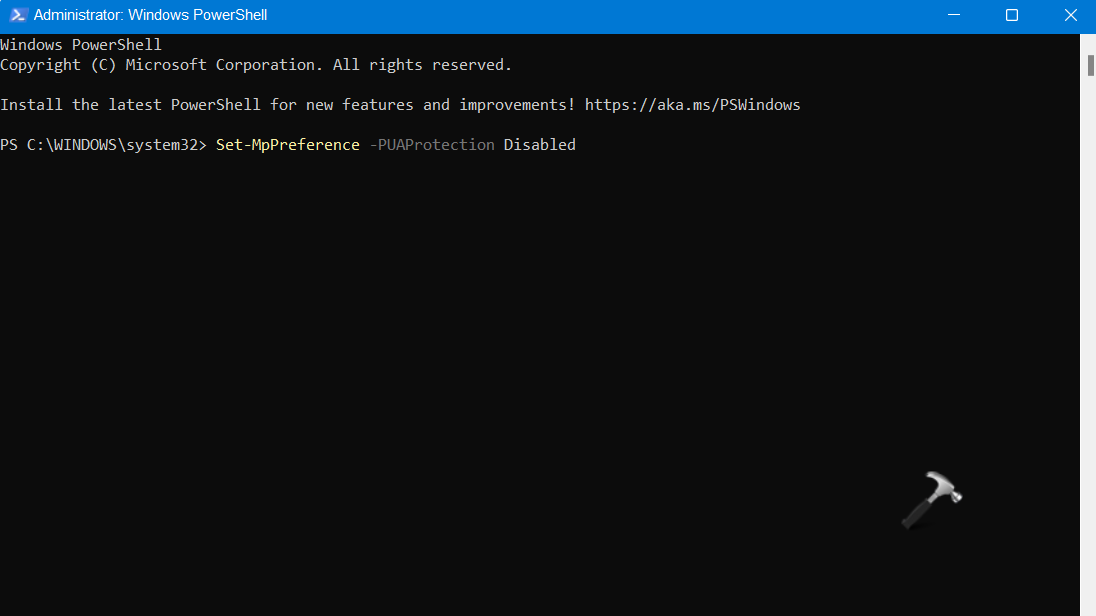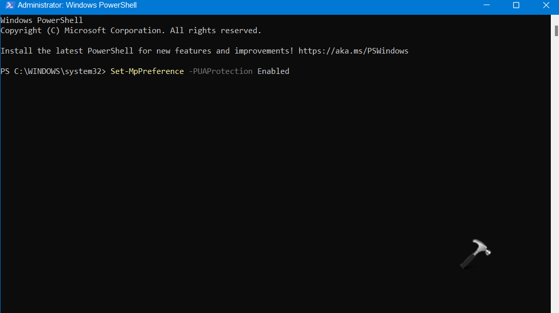 2。PUA保護を有効にするには、次のコマンドを実行します。