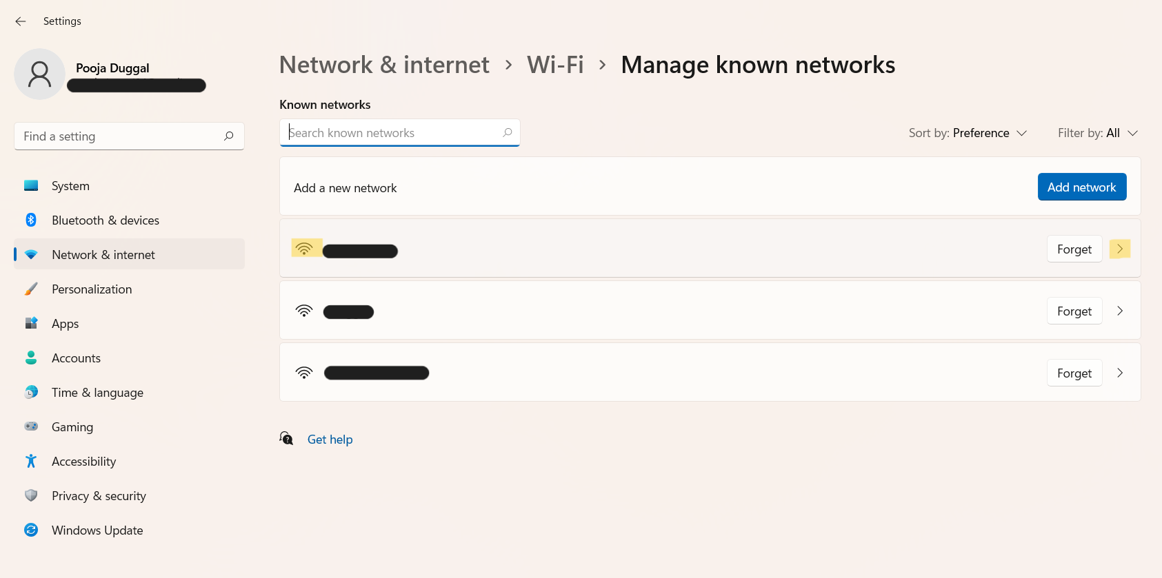 3。そこに着いたら、をクリックします既知のネットワークを管理しますタブ。
