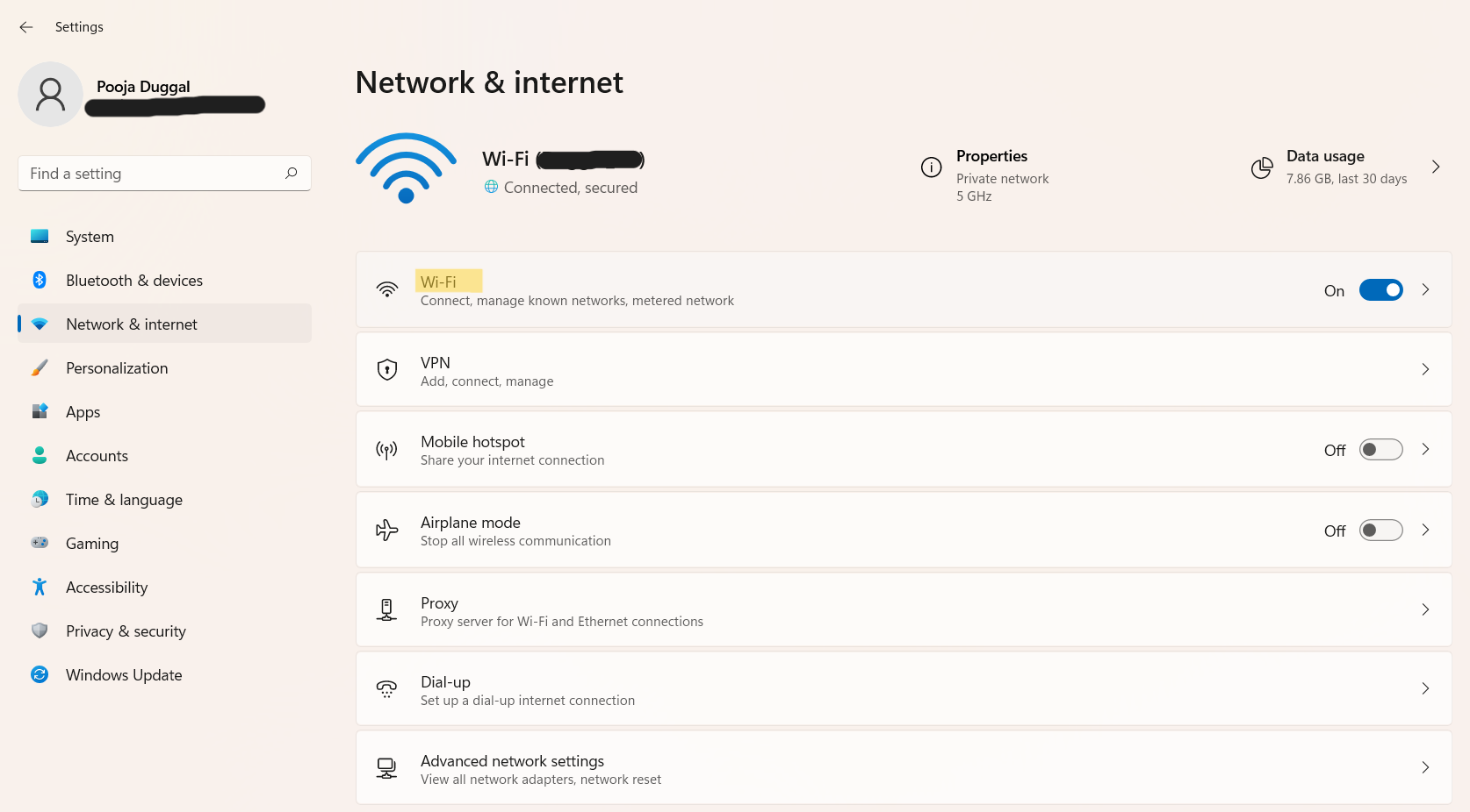 4。次に、を選択しますWi-Fiネットワークそのために機能をオンまたはオフにしたいです。