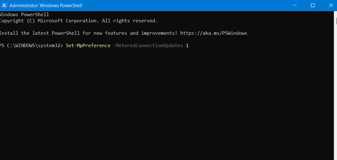 Set-MpPreference -MeteredConnectionUpdates 1
