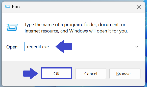 1。Windowsキー + Rを押してくださいR. regedit.exeを入力し、[OK]をクリックします。
