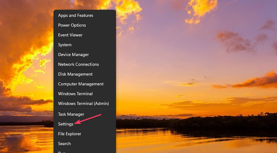 1. Windowsロゴ + xホットキーを押して、そのアプリを起動するショートカットをクリックして設定を開きます。
