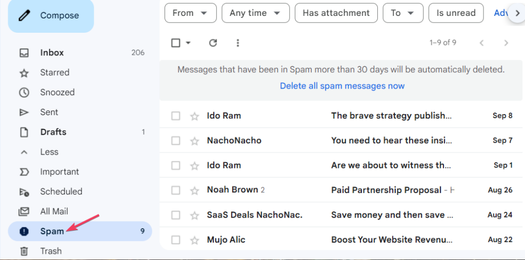 2。メールアカウントのスパムフォルダー内をご覧ください