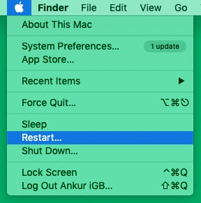 クリックしますアップルロゴ画面の左上で選択します再起動。 Macが電源を入れたら、外部ドライブを接続すると、デスクトップとインサイドファインダーに表示される必要があります。