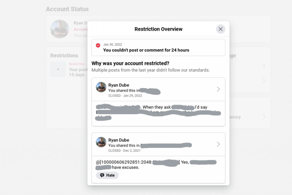 制限ペインにそれらの詳細が表示されている場合は、おめでとうございます!あなたは正式にFacebook刑務所にいます。