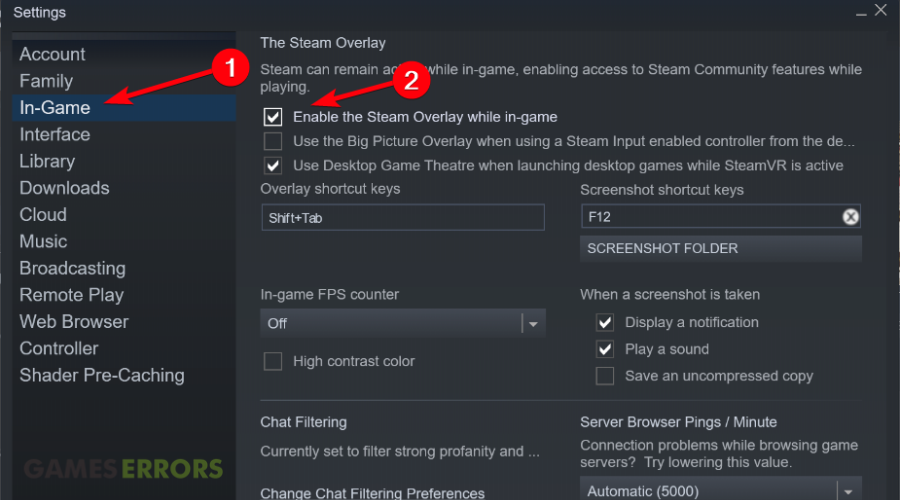 - 確認してくださいゲーム内で蒸気オーバーレイを有効にしますオプションはチェックされていません。