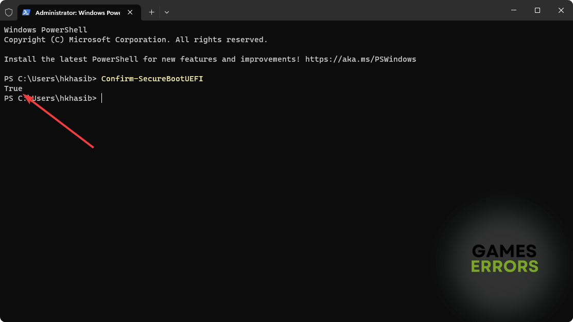 - 次に、Confirm-SecureBootuefiを入力し、Enterを押して実行します。