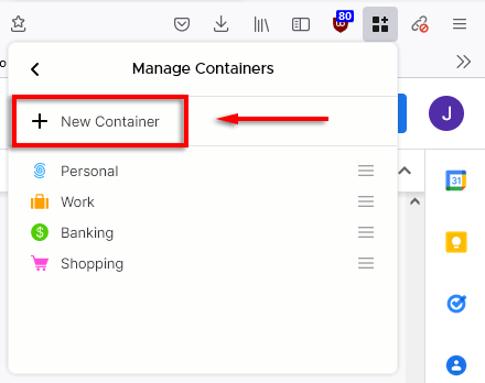 インストールされると、マルチアカウントコンテナは、コンテナアイコンツールバーで。これは、3つの正方形とプラスシンボルのように見えます。