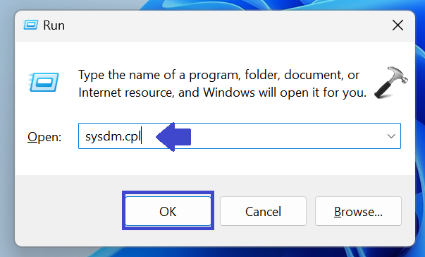 1。Windowsキー + Rを押します。SYSDM.CPLを入力し、[OK]をクリックします。