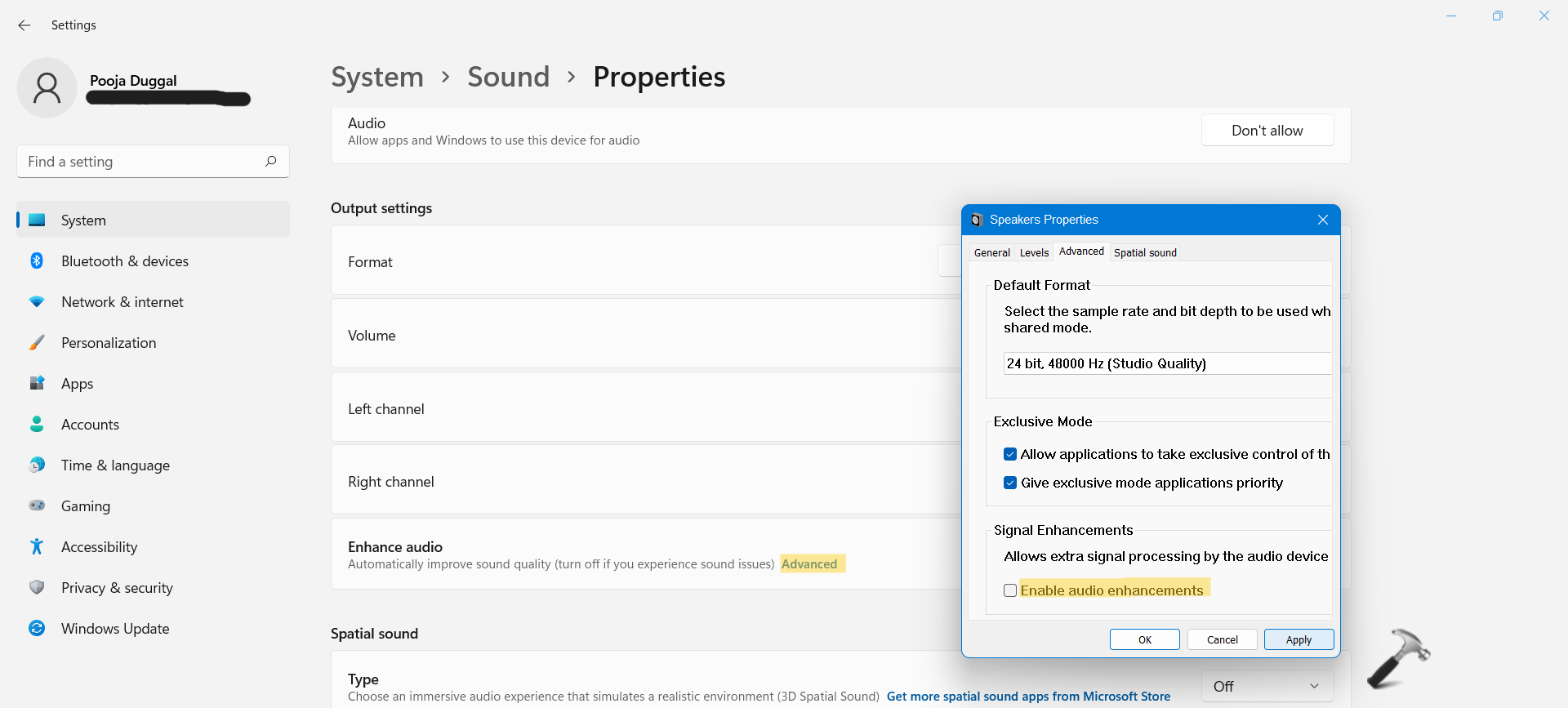 3。その後、存在するボックスをチェックしてくださいオーディオ強化を強化しますそれらを無効にするため。