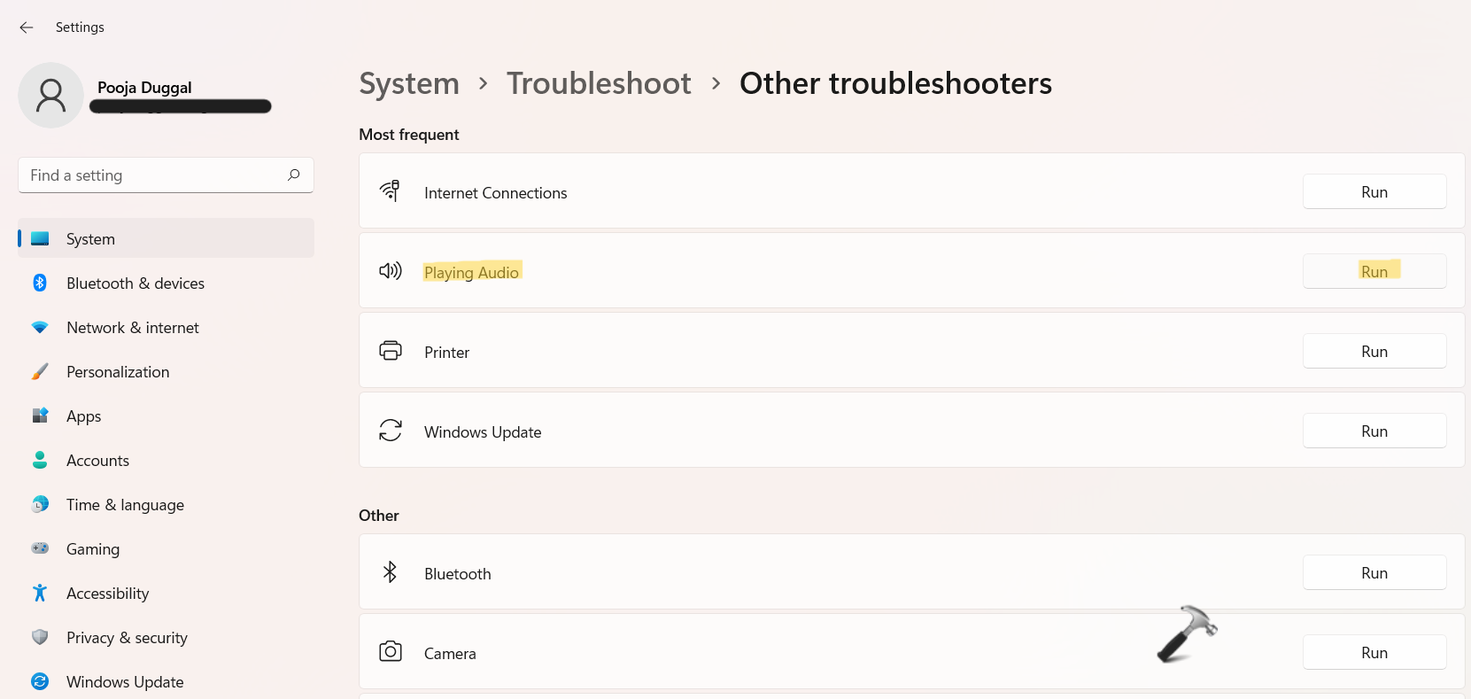 修正1 - 再生オーディオトラブルシューティングを実行します