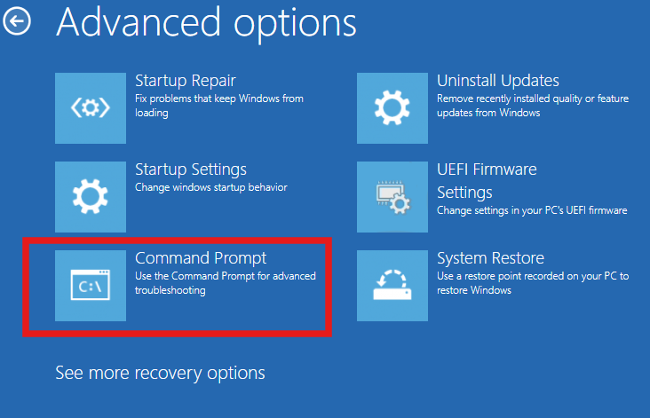 1. 詳細な回復オプションにアクセスし、コマンド プロンプト (管理者) を開きます。