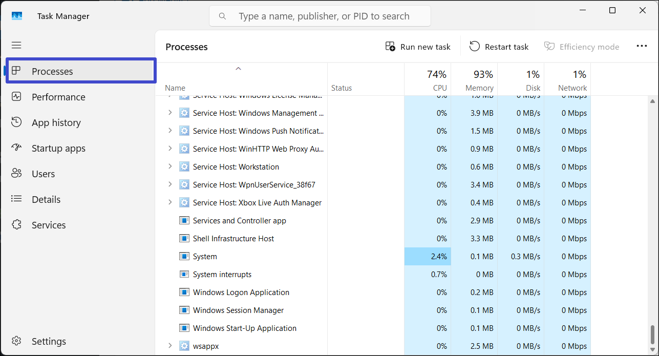 2。[タスクマネージャー]ウィンドウで、「プロセス」タブ。
