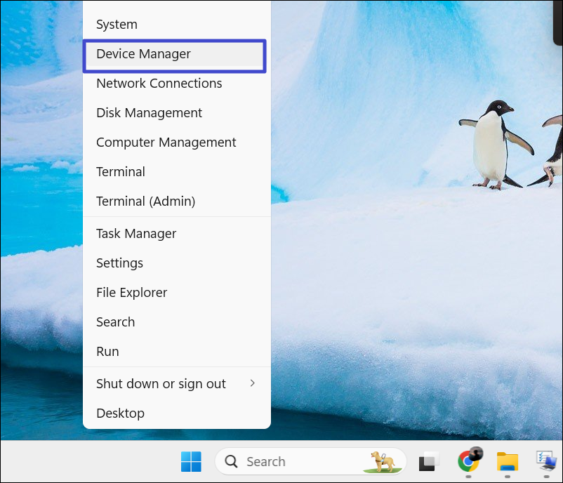 1. [スタート]メニューを右クリックして、[]を選択します。デバイスマネージャ」コンテキストメニューから。