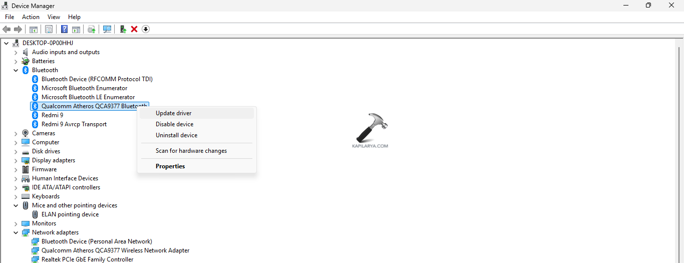 ステップ3-次に、Bluetoothアダプターを右クリックして、[更新]ドライバーを選択します。