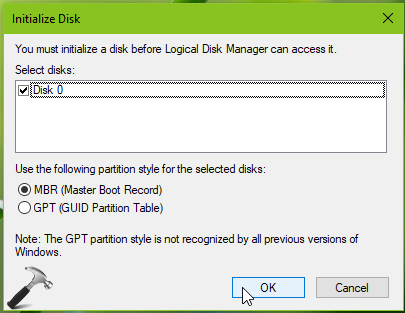 Windowsでは、新しいハードドライブを追加するときは、使用する前にディスクを初期化する必要があります。初期化プロセスマスターブートレコード(MBR)やGUIDパーティションテーブル(GPT)などのパーティションスタイルで新しく追加されたディスクを構成します。以前のバージョンのWindowsでディスクを後で使用する場合に備えて、MBRパーティションを通常推奨します。新しいディスクを追加してディスク管理のスナップインを開始するとすぐに、ディスクの初期化を自動的に求められます。