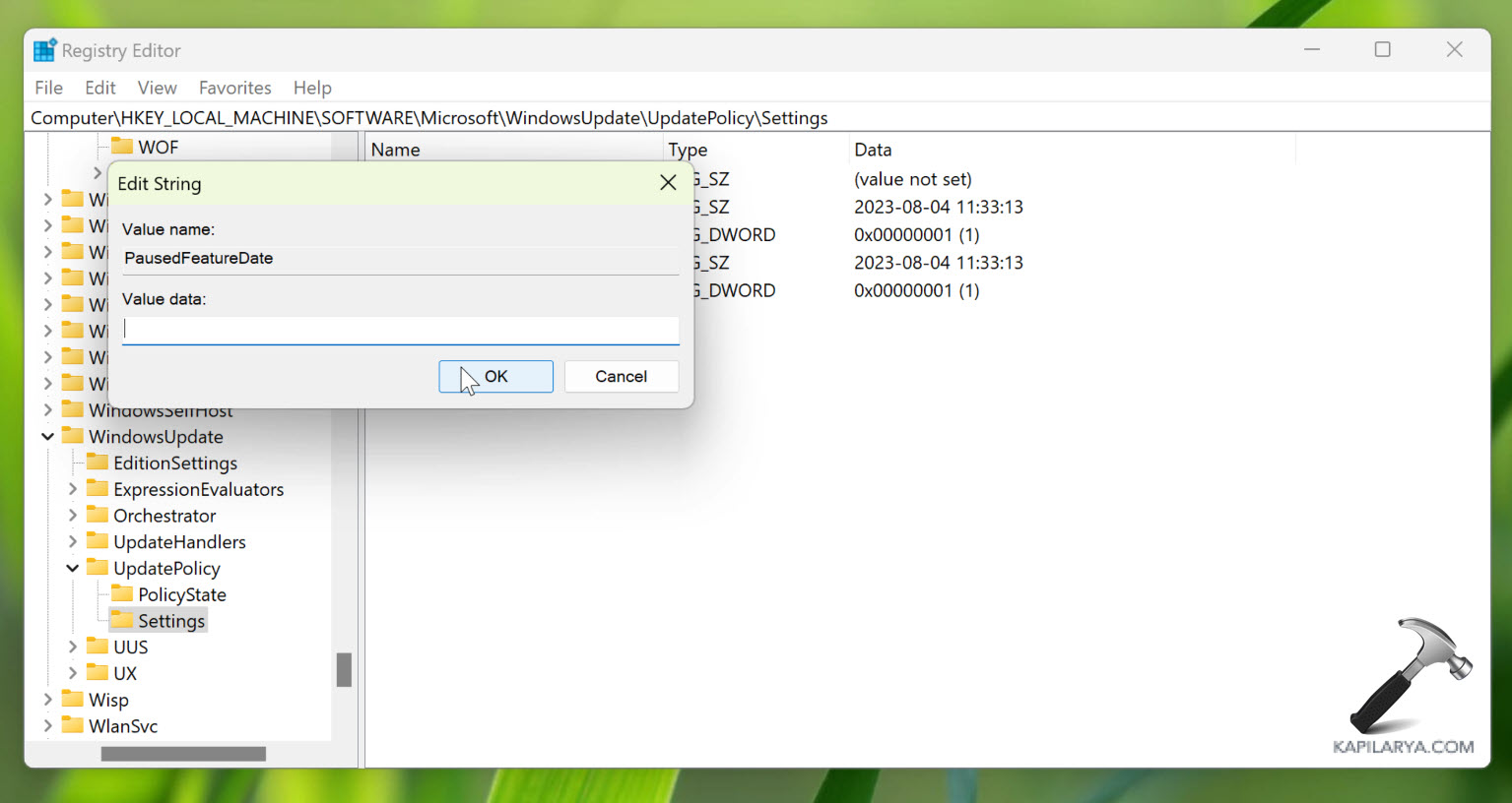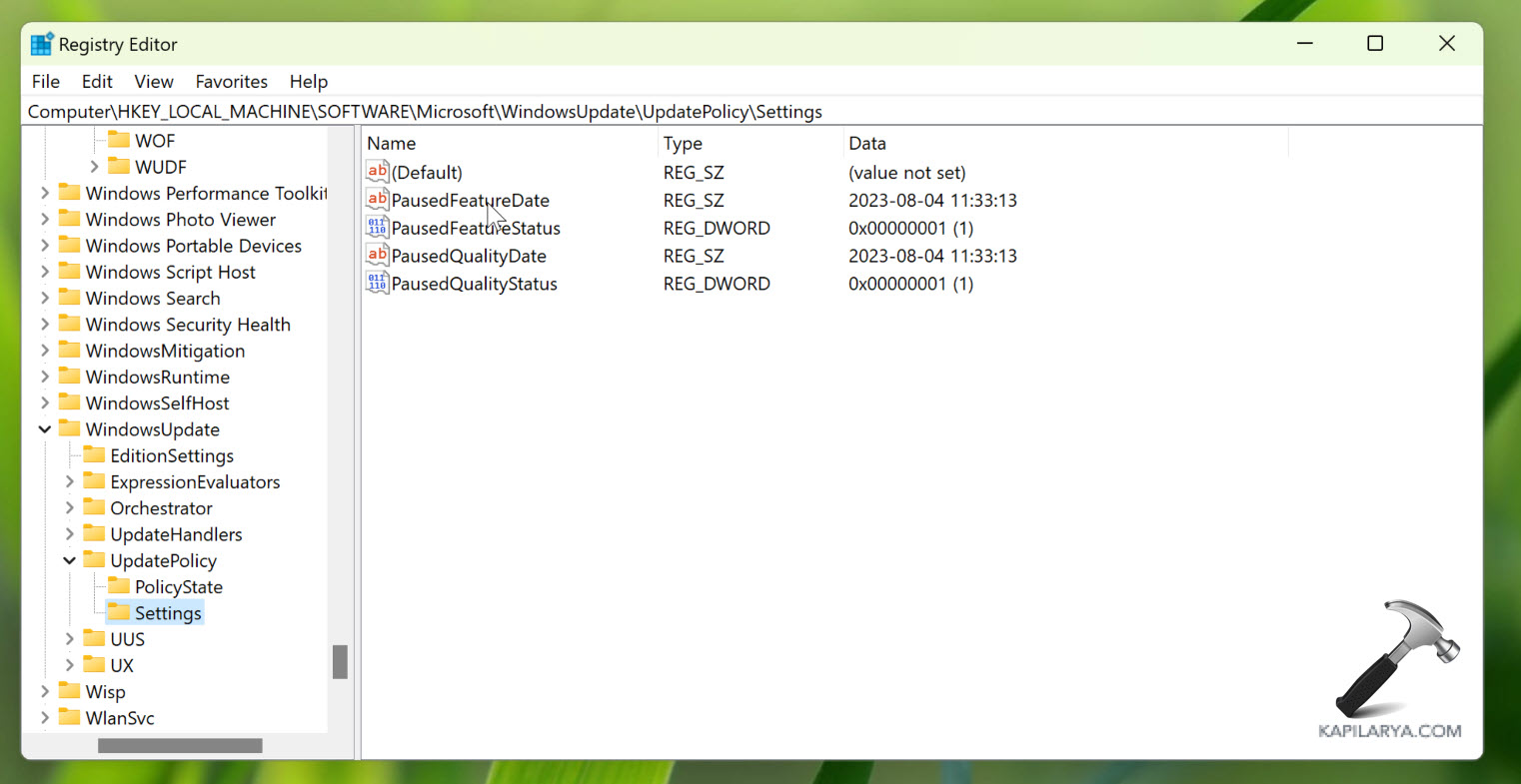 HKEY_LOCAL_MACHINESOFTWAREMicrosoftWindowsUpdateUpdatePolicySettings