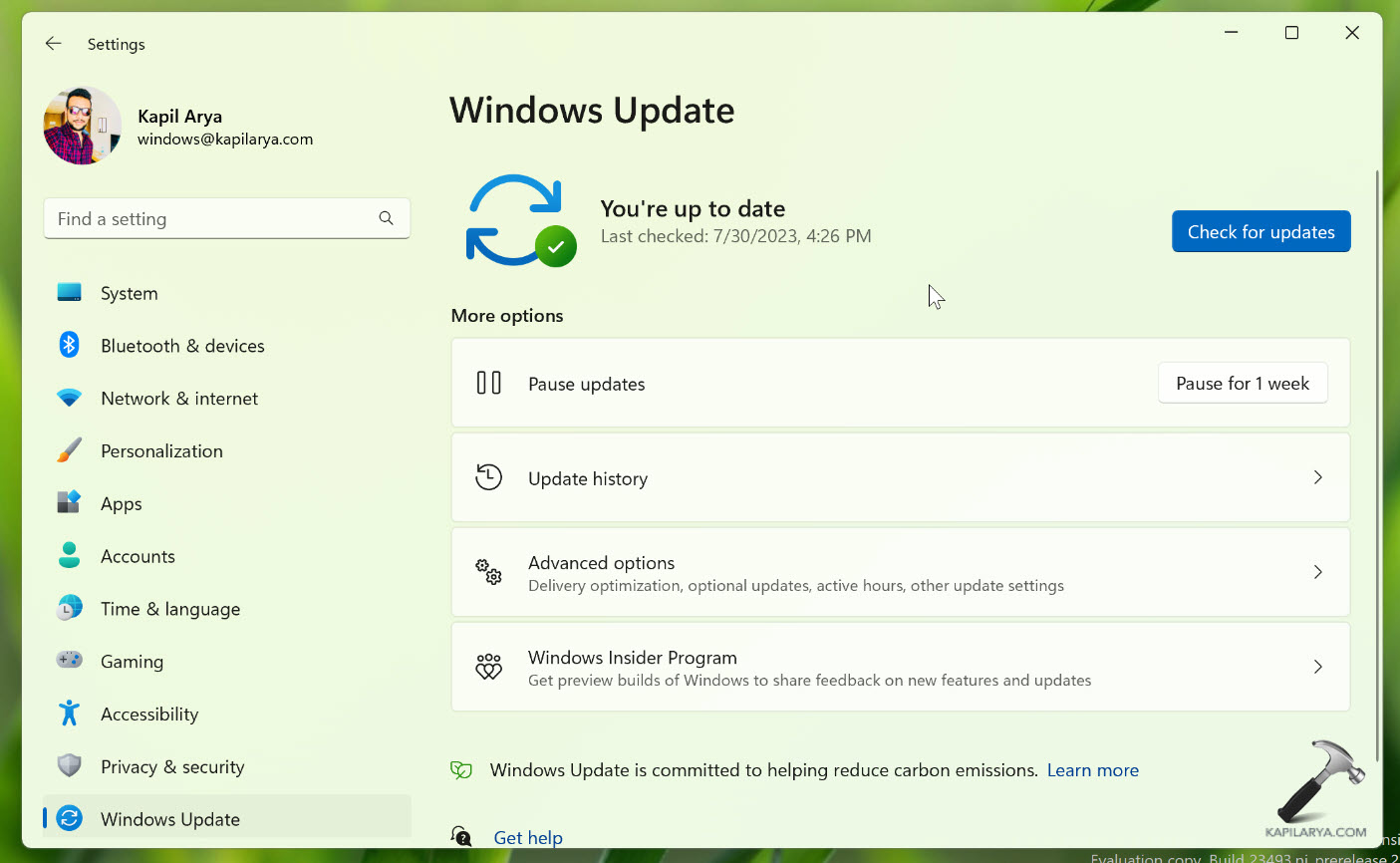 これで、設定アプリのWindows Updateセクションに移動できます。更新のチェックボタンが戻ってきたことがわかります。ただし、この段階で更新をチェックしないでください。そうすることで、Windowsが更新を自動インストールできるようになります。