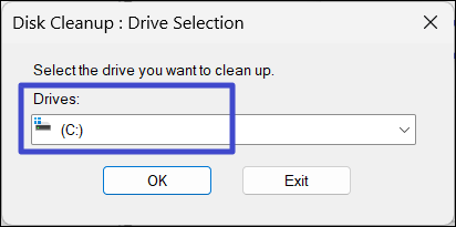 2。クリーンアップするドライブを選択してクリックします。わかりました「。