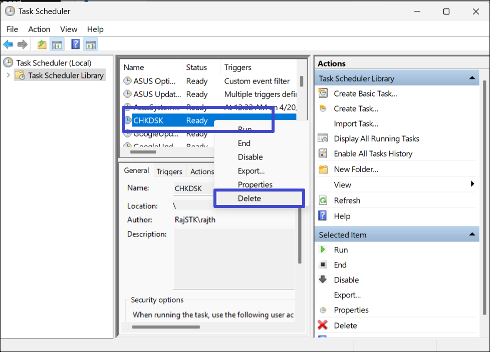 場合によっては、chkdskがスケジュールされたタスクとして設定されている場合、Windowsが起動すると停止する可能性があります。これを防ぐには、スケジュールされたタスクリストからCHDSKを削除する必要があります。