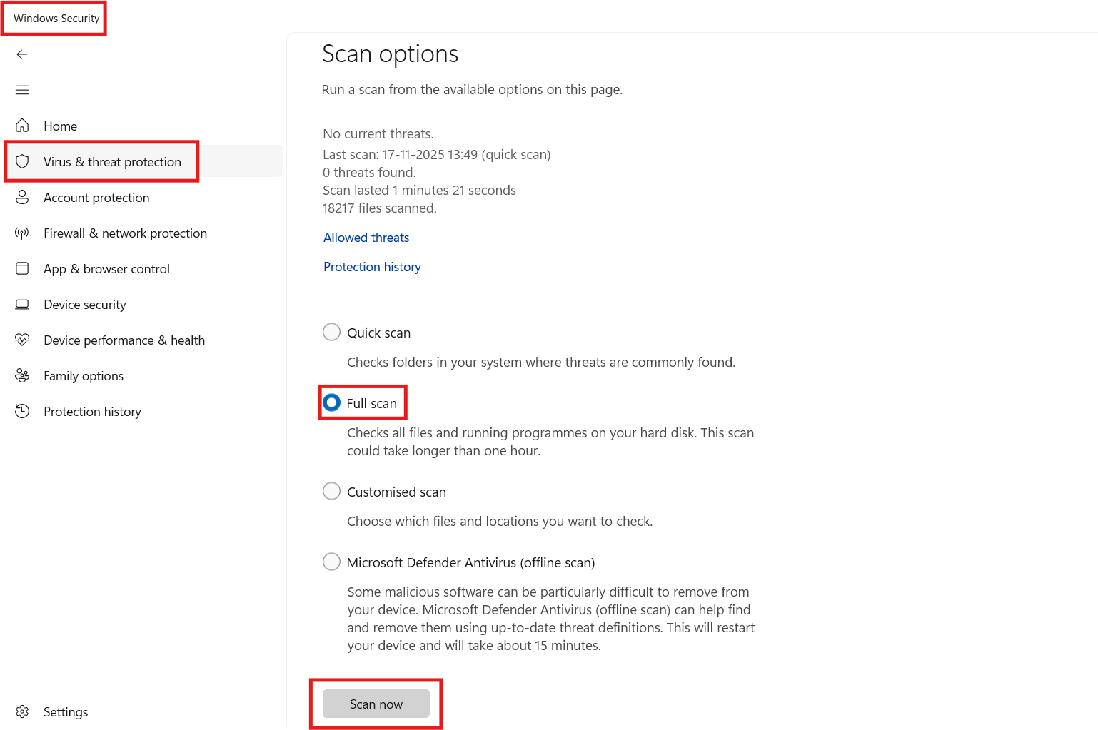 2. フル スキャンを実行し、Windows が脅威を削除できるようにします。