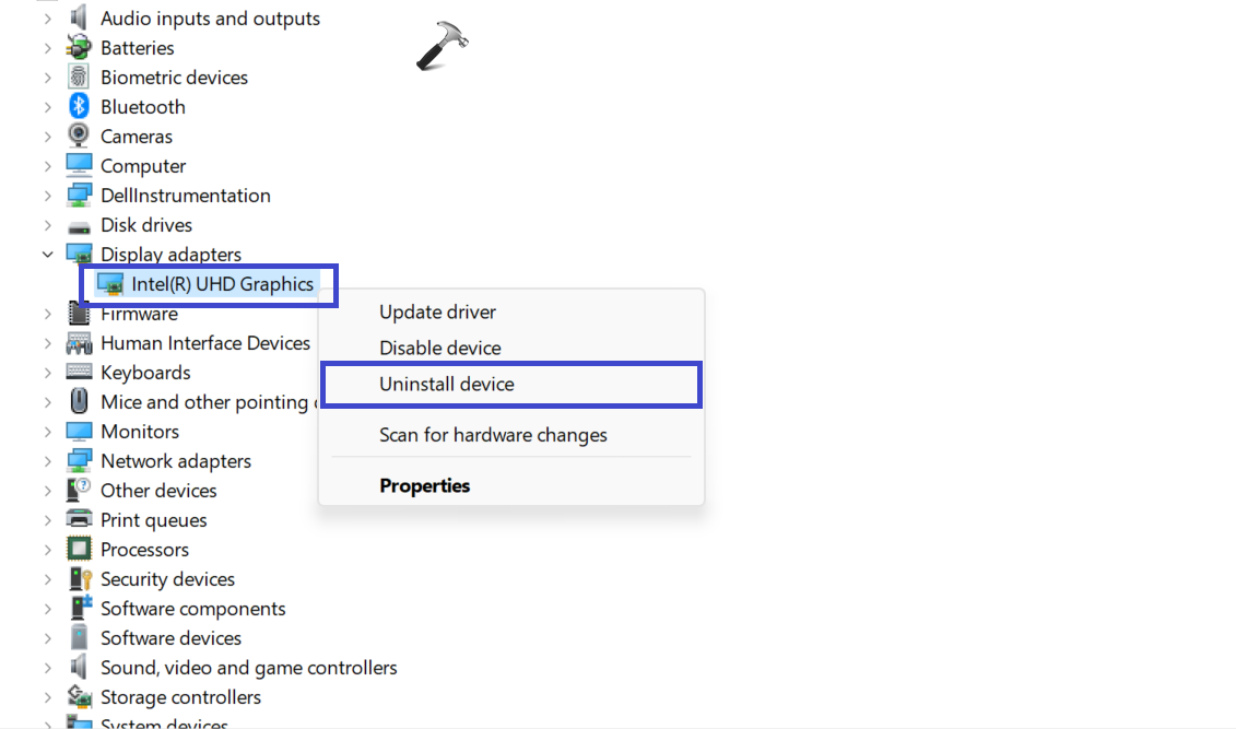 3.グラフィックドライバーを右クリックして[]をクリックします。アンインストール」ドライバーをアンインストールします。