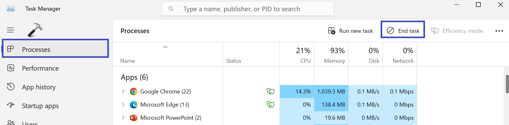 1.タスクマネージャーを開き、に移動しますプロセスタブ。
