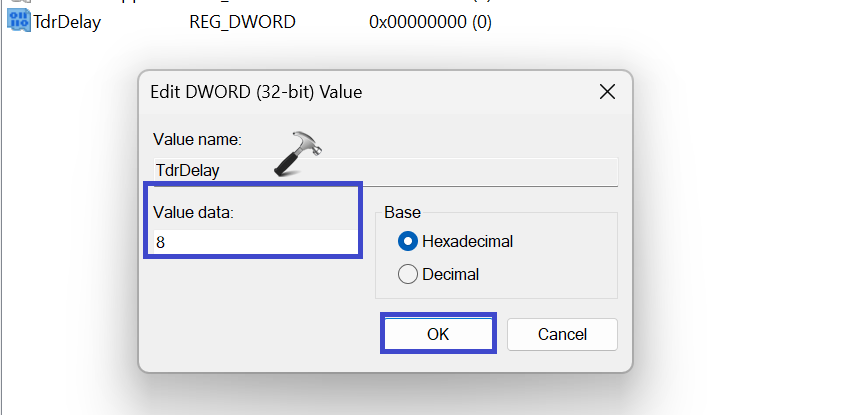 4。右クリックをオンにします。tdrdelay」と選択修正する「。