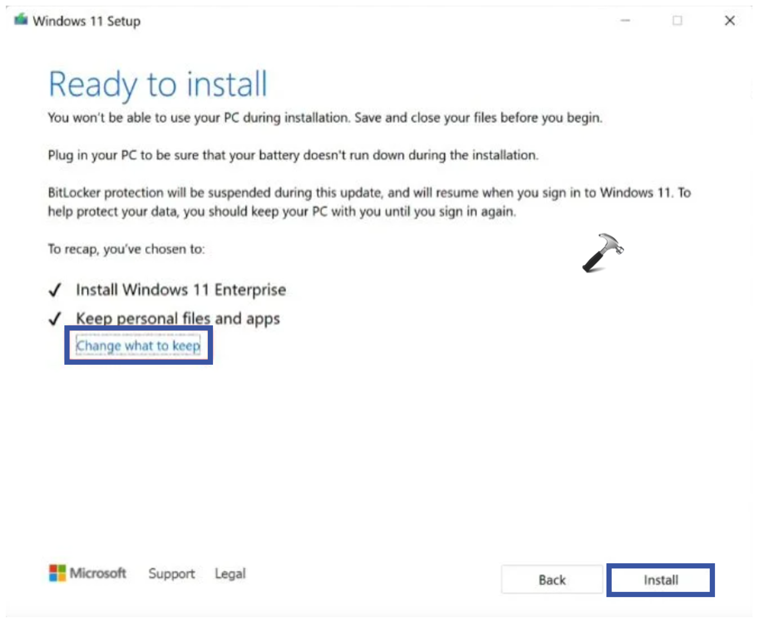 7。最後に、選択します。インストール」Windows 11の再インストールをPCに開始します。PCは、再インストール中に数回再起動します。