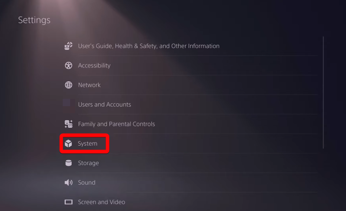 - あなたにサインインしますPS5、メインメニューから[設定]を選択します。