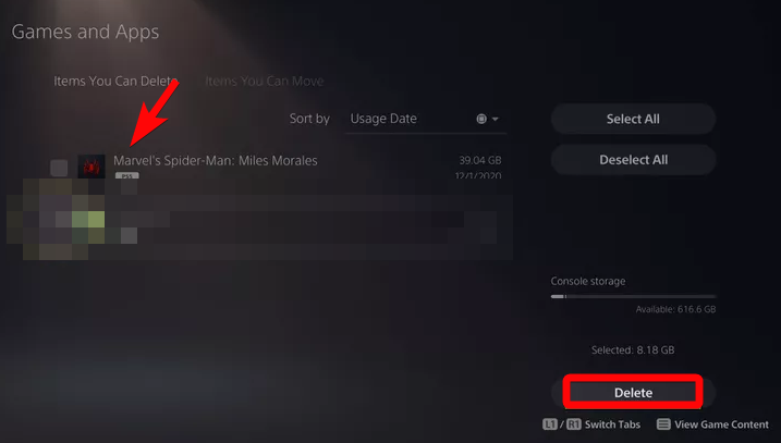 - 次に、次の画面で、ゲームを選択し、右側の削除をクリックします。