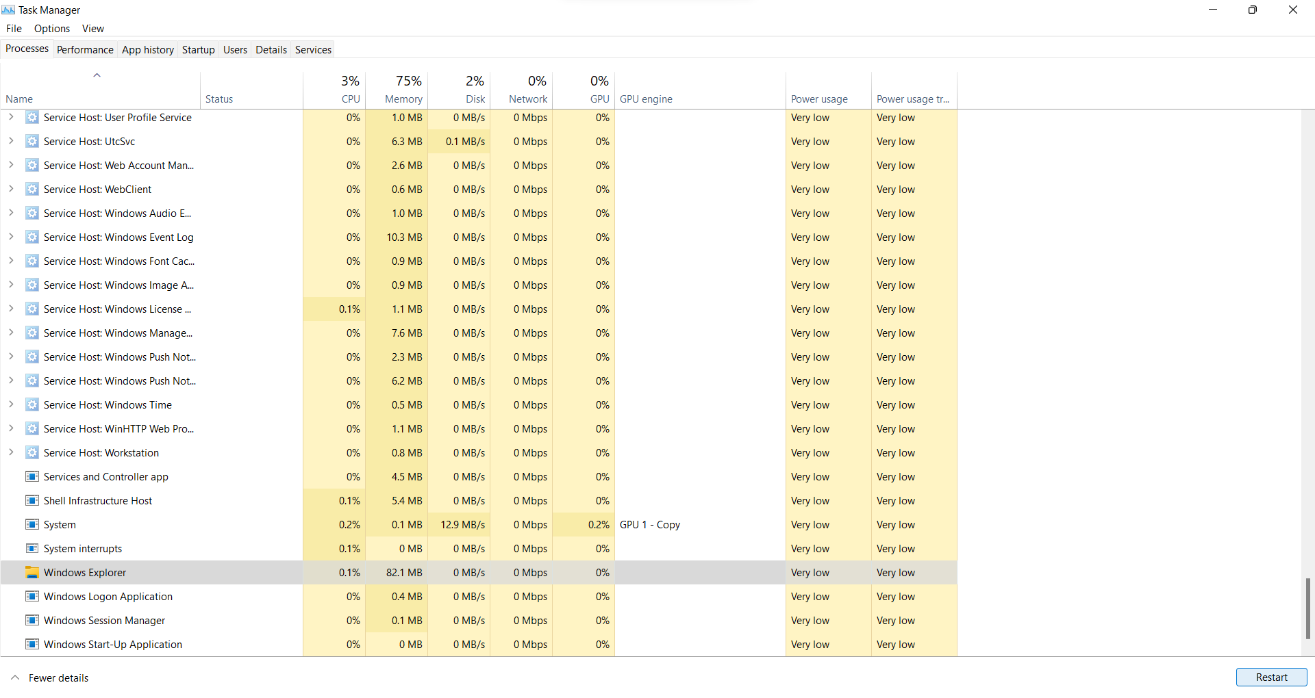 ステップ2:タスクマネージャーウィンドウにプロセスのリストがあります。選択しますWindowsエクスプローラーこのリストから。