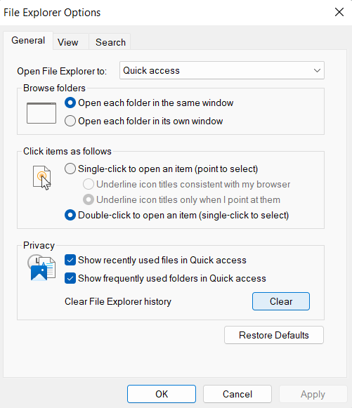 ステップ1:検索ファイルエクスプローラーオプション[スタート]メニューで開きます。