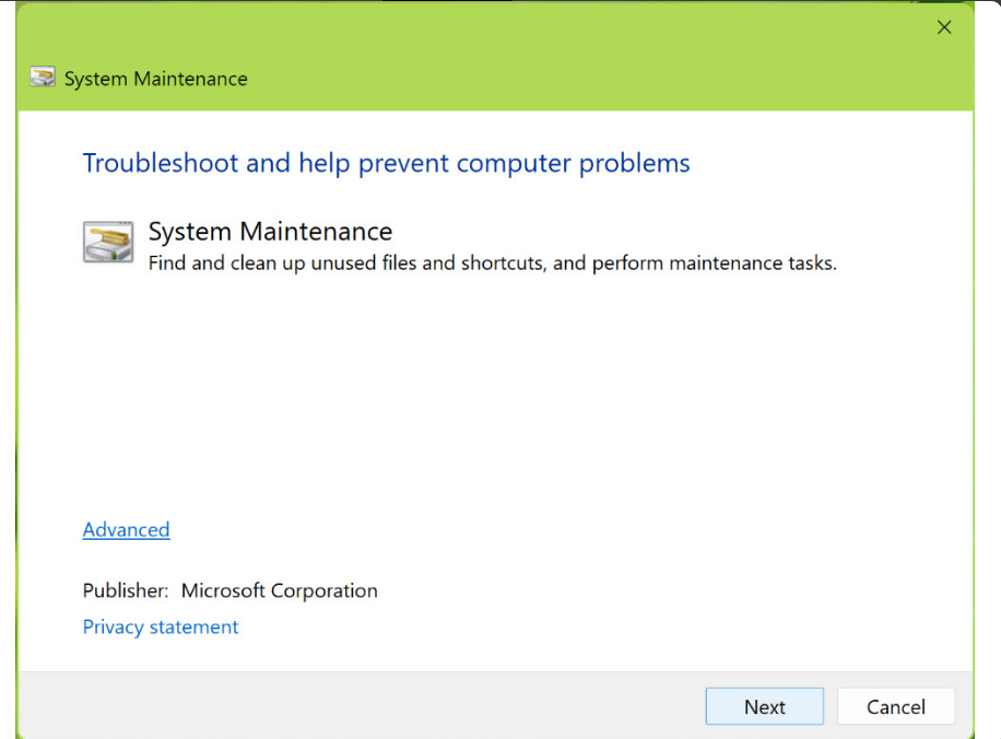 3.「トラブルシューティング」をクリック> [メンテナンスタスクの実行]をクリックします。