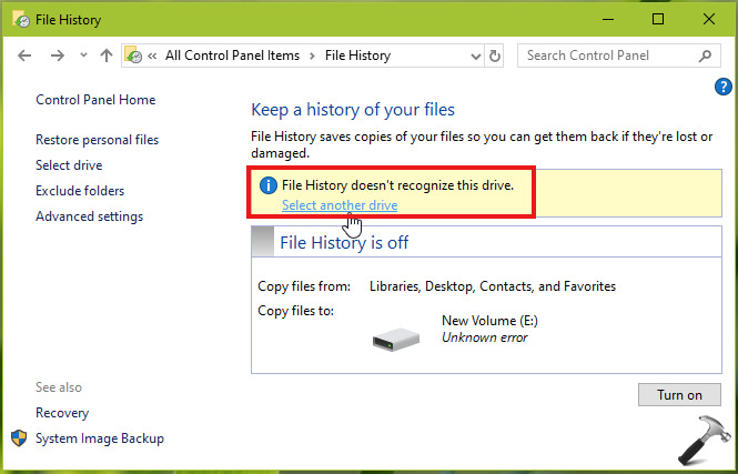 修正1:ターゲットドライブを再接続します。それから、バックアップのドライブを再選択しますファイル履歴から。