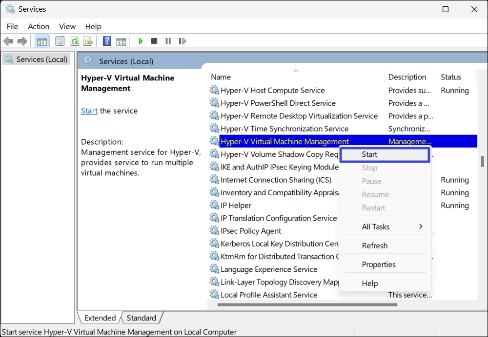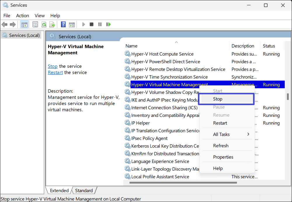 方法5:Hyper-V仮想マシン管理サービスを再起動します