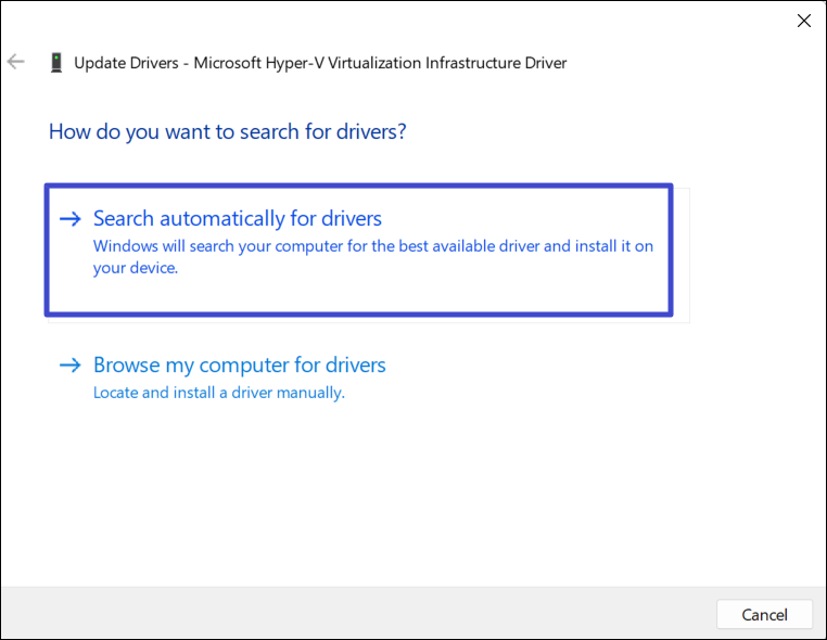 4。次に、選択します。ドライバーを自動的に検索します「。