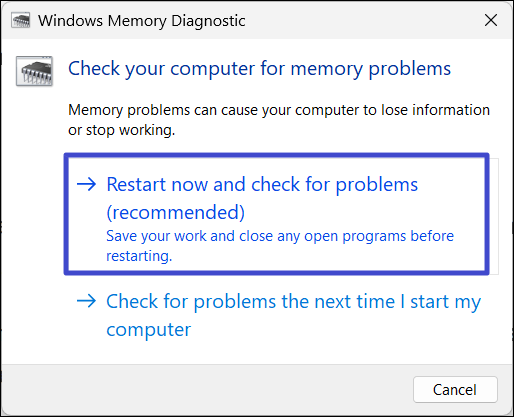 3。その後、Windowsは再起動し、問題についてメモリモジュールを確認します。